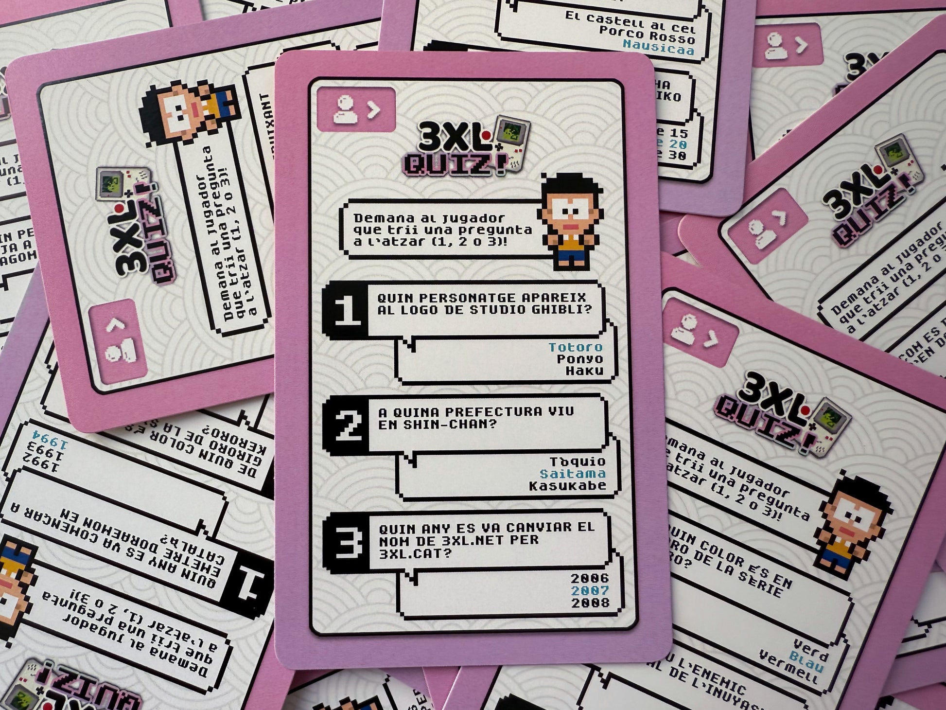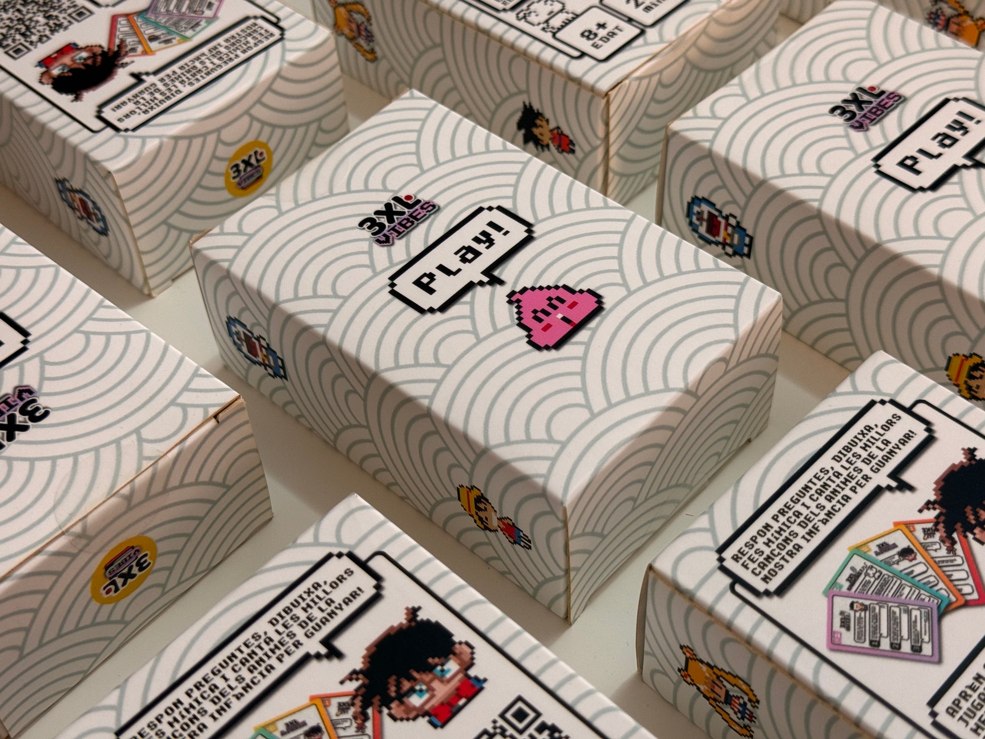 Joc de cartes del 3xlvibes. A través de quatre tipus de proves haureu de lluitar per endur-vos la victòria. Demostra que ets el millor recordant les sèries de la nostra infància responent tota mena de preguntes, cantant els seus openings, fent mímica o dibuixant! Producte dissenyat 100% per nosaltres.