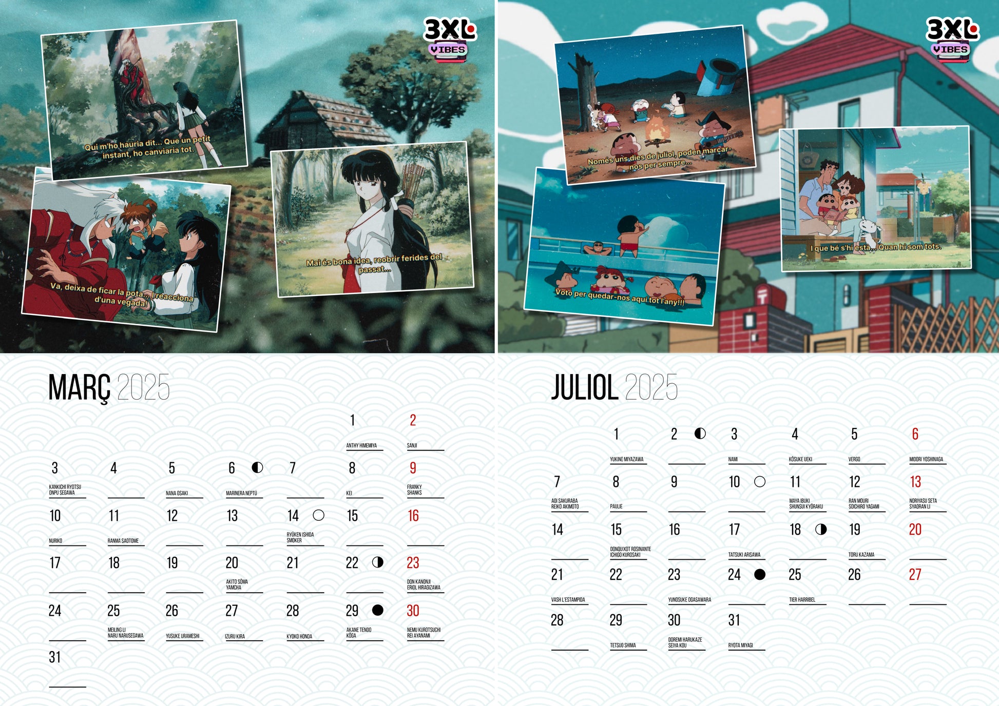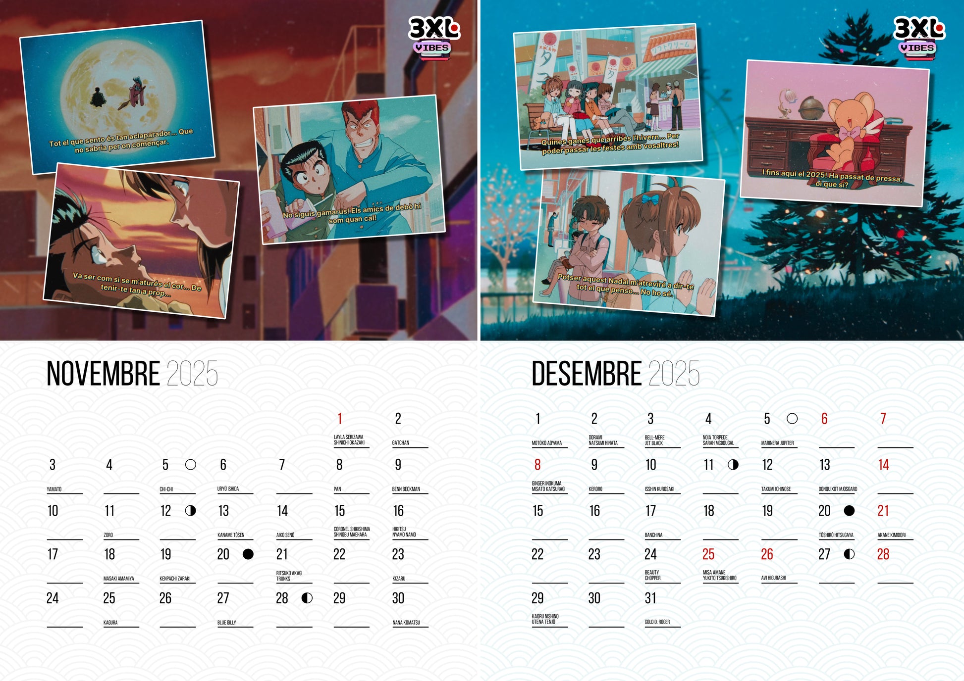 Calendari 3xlvibes 2025 | Ja disponible el nou calendari 2025 del 3xlvibes, amb els millors "frames" de les sèries de la nostra infància i adolescència. Inclou 300 aniversaris de personatges i una pàgina dedicada exclusivament al santoral per a poder-los consultar amb facilitat. Producte dissenyat per nosaltres i imprès a Catalunya.
